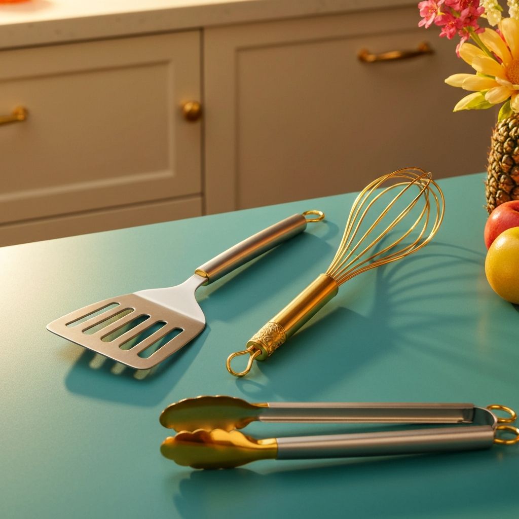 Spatulas, whisks, serving spoons, and essential kitchen gadgets